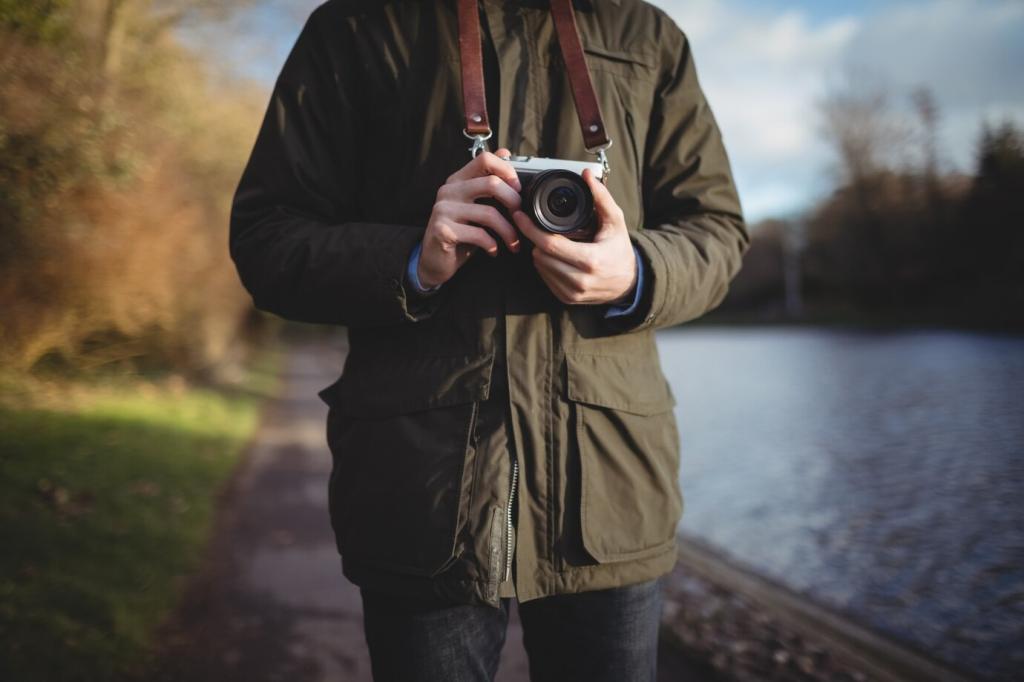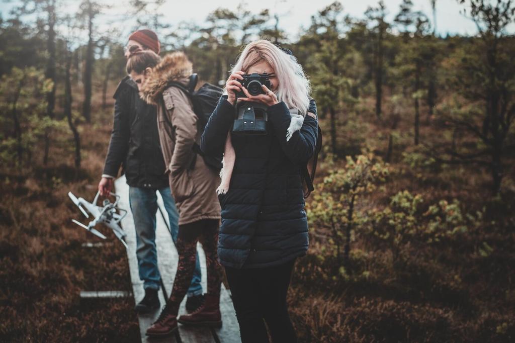 Plane goldene Stunden und akzeptiere das Mittagslicht für grafische Formen und Texturen. Halte Pausen zum Sichten ein, damit abends keine Hektik entsteht. Welche Routinen helfen dir, kreativ zu bleiben, ohne den Tritt zu verlieren? Schreib uns deine Tipps.